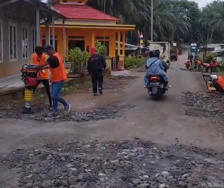 Dengan semangat gotong royong, mereka bahu-membahu memperbaiki jalan yang selama ini menjadi akses utama penghubung antar Kecamatan. Perbaikan dilakukan untuk mengantisipasi terjadinya kecelakaan, terutama bagi pengendara roda dua yang kerap tergelincir akibat lubang jalan.