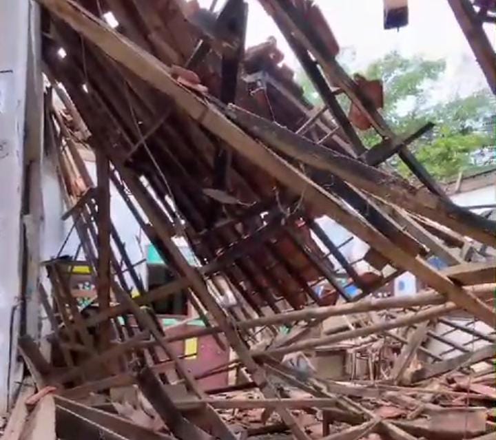 Akibat kondisi yang sudah lapuk, atap bangunan SD di Kp. Cikidang RT 001/008 Desa Cikidang Kecamatan Cikidang, Kabupaten Sukabumi seketika ambruk.