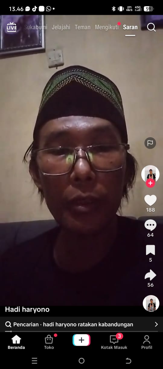 Video yang berdurasi satu menit satu detik tersebut di duga mengandung unsur kebencian dan pelecehan kepada pisik juga profesi jurnalis berikut martabat sesorang,video tersebut tersebar luas di jejaraing sosial tiktok dengan akun HADI HARYONO,isi durasi video tersebut secara jelas oknum tersebut secara sadar dan tegas telah melontarkan kalimat bernada melecehkan atau ketidak patutan dalam beretika di media sosial,apalagi diri oknum tersebut selalu menggadang gadang mengaku sebagai ketua umum lembaga tertentu dan merangkap sebagai profesi jurnalis.sungguh di luar kepatutan jika kita melihat kepada aspek kata di prasa kalimat yang sudah di lontarkan yang bersangkutan.ujar ketua pararaja kab sukabumi,Kang Danis Dalam keterangan nya terhadap awak media jumat siang,