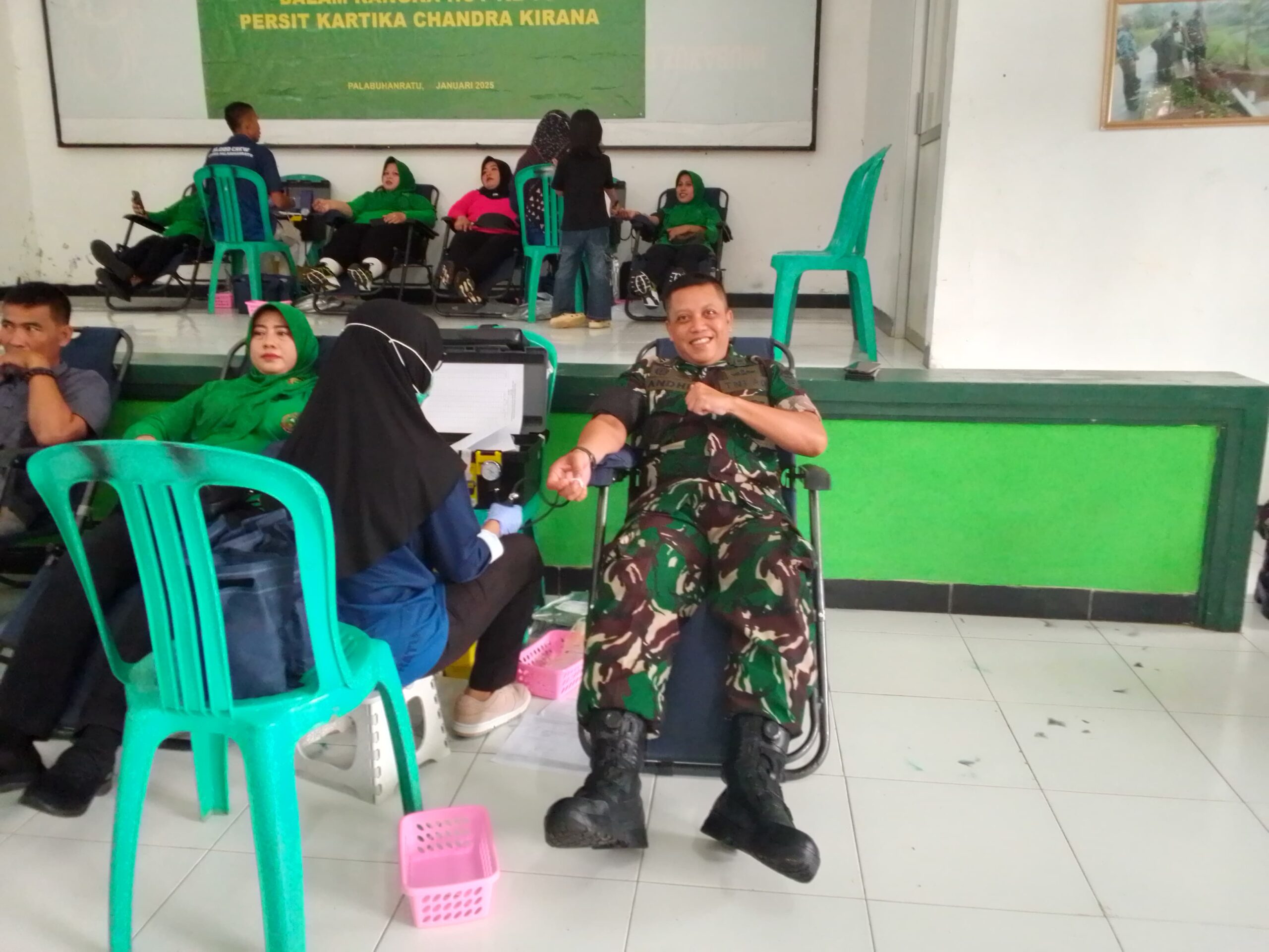 Sukabumi, 22 Januari 2025 – Dalam rangka memperingati Hari Ulang Tahun ke-79 Persit Kartika Chandra Kirana Tahun 2025, Komando Distrik Militer (Kodim) 0622/Kab. Sukabumi menggelar kegiatan donor darah di Aula Makodim 0622/Kab. Sukabumi pada Rabu (22/01/2025) pukul 08.00–12.00 WIB.