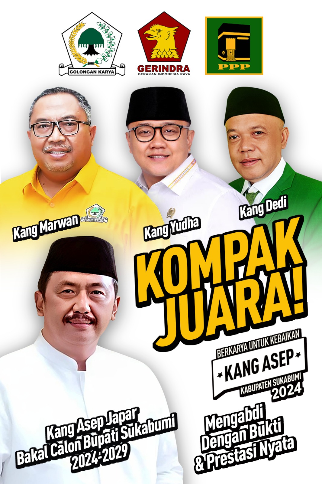 Sebagai calon bupati yang diusung oleh Partai Golkar, Kang Asep Japar juga mendapatkan dukungan dari partai koalisi, yaitu Gerindra dan PPP. Kesepakatan koalisi ini semakin menguatkan posisi Kang Asep Japar dalam kontestasi politik mendatang dan menunjukkan soliditas di antara partai-partai yang berkomitmen untuk membawa perubahan positif bagi masyarakat Kabupaten Sukabumi.