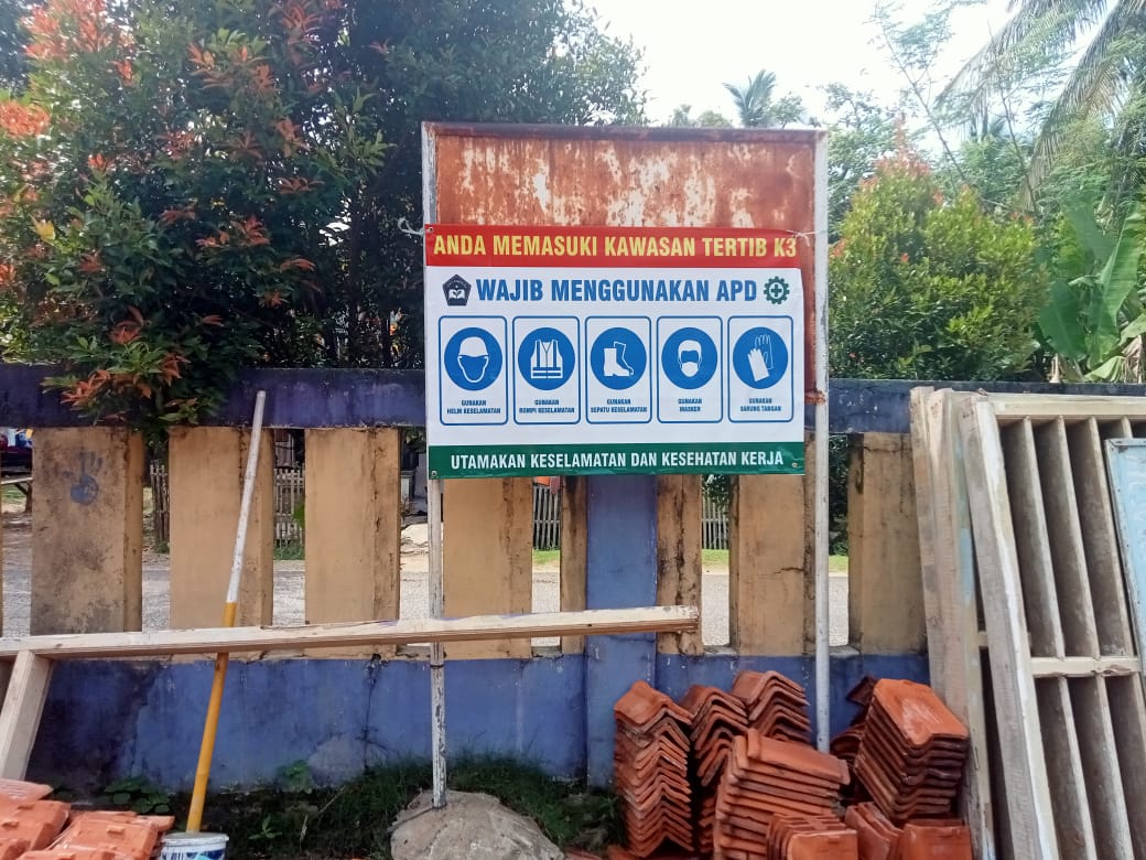 Kontradiksi yang mencolok terlihat antara himbauan K3 di lokasi proyek dengan praktik di lapangan. Sebuah papan informasi K3 terpasang jelas, menampilkan gambar-gambar APD wajib seperti helm proyek, sepatu bot (safety shoes), dan rompi reflektif. Namun, sejumlah pekerja di lapangan terlihat tidak mengenakan APD tersebut, bekerja tanpa pelindung kepala yang memadai, atau tanpa sepatu keselamatan, yang mana hal ini secara langsung melanggar prosedur keselamatan kerja.