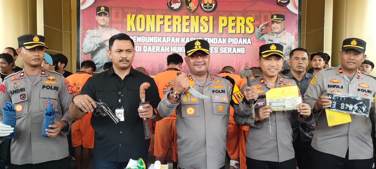 Dalam konfrensi pers ,Kapolres Serang AKBP Condro Sasongko di damping Wakapolres Ali Rahman, beserta Kasatreskrim Adi Kurniadi’ menyampaikan bahwa, ke 13 tersangka tersebut