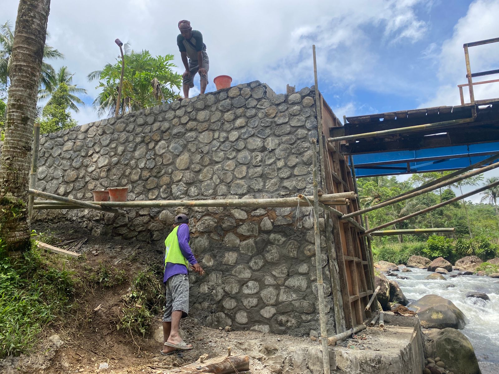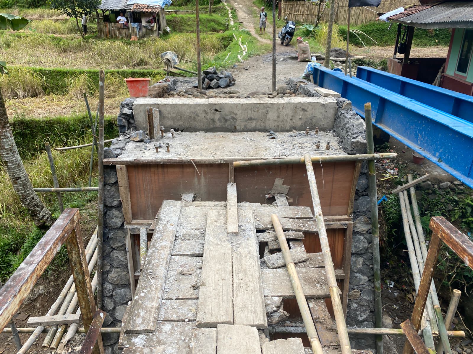 Realisasi pembangunan jembatan ini dipercayakan kepada CV Putra Cakrawala sebagai pelaksana pekerjaan. Proyek infrastruktur ini menelan nilai kontrak sebesar Rp 242.726.000,00 (Dua Ratus Empat Puluh Dua Juta Tujuh Ratus Dua Puluh Enam Ribu Rupiah).