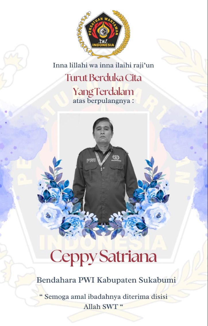 Selarasonline.com 6 / 05/2025 kabupaten Sukabumi Kabar duka menyelimuti dunia pers Kabupaten Sukabumi. Ceppy Satriana Trimuria, Bendahara Persatuan Wartawan Indonesia (PWI) Kabupaten Sukabumi, dikabarkan telah berpulang ke Rahmatullah pada hari Selasa, 6 Mei 2025.