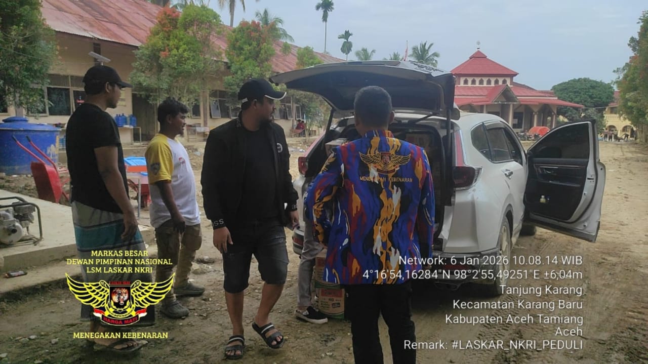 Aceh Tamiang — Dewan Pimpinan Nasional (DPN) Lembaga Swadaya Masyarakat LASKAR NKRI menyalurkan bantuan kemanusiaan kepada warga terdampak banjir di Kecamatan Karang Baru, Kabupaten Aceh Tamiang, Provinsi Aceh, pada Senin (6/1/2026).