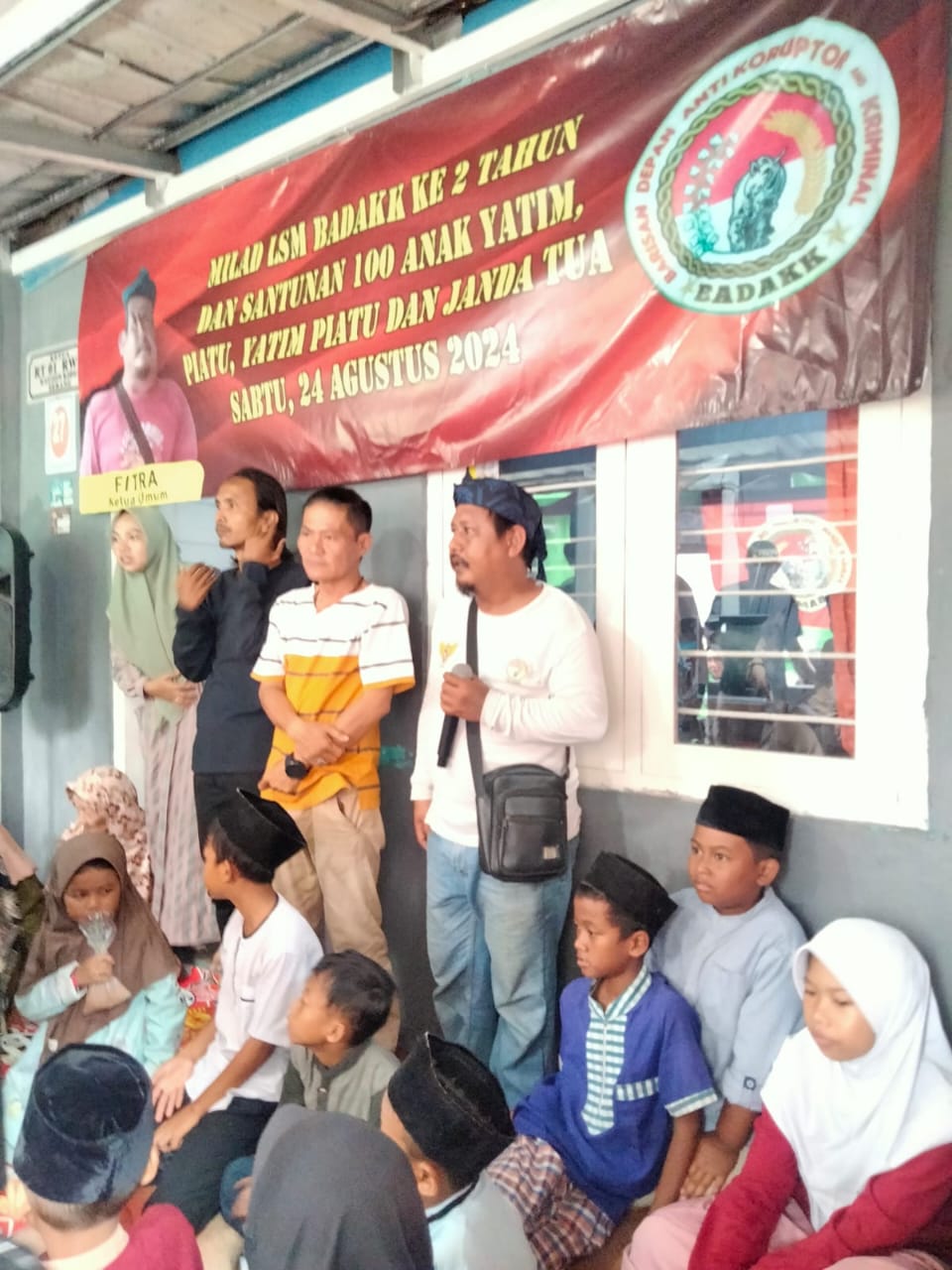 Dari berbagai lingkungan yang ada di Kota Serang para anak yatim piatu dan para janda didatangkan warga warung jaud , kepuren cimuncang tapi yang diutamakan dari warga sekitaran sekerteriat Lembaga Swadaya Masyarakat BADAKK ( kaujon – red ) untuk santunan demi berbagi kebahagian.