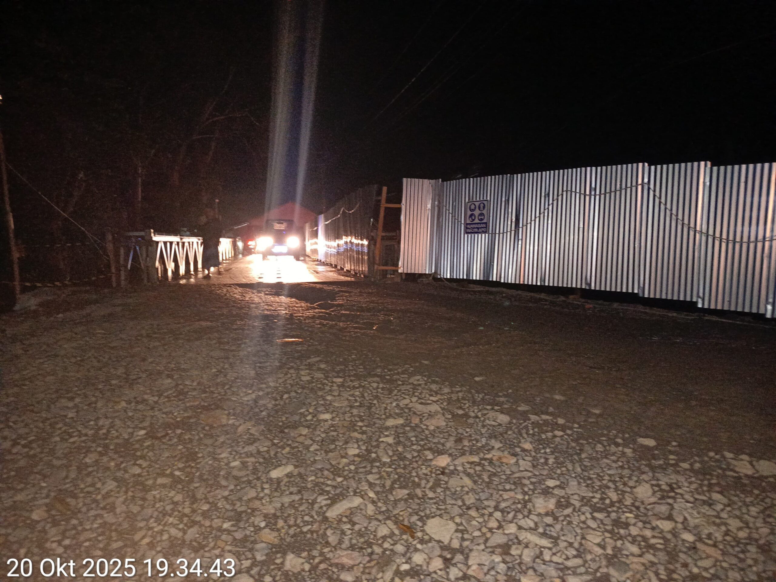 “Kalau malam gelap sekali, tidak ada lampu penerangan dan rambu tanda adanya pekerjaan. Ini sangat berbahaya bagi pengguna jalan,” ungkap salah satu warga setempat.