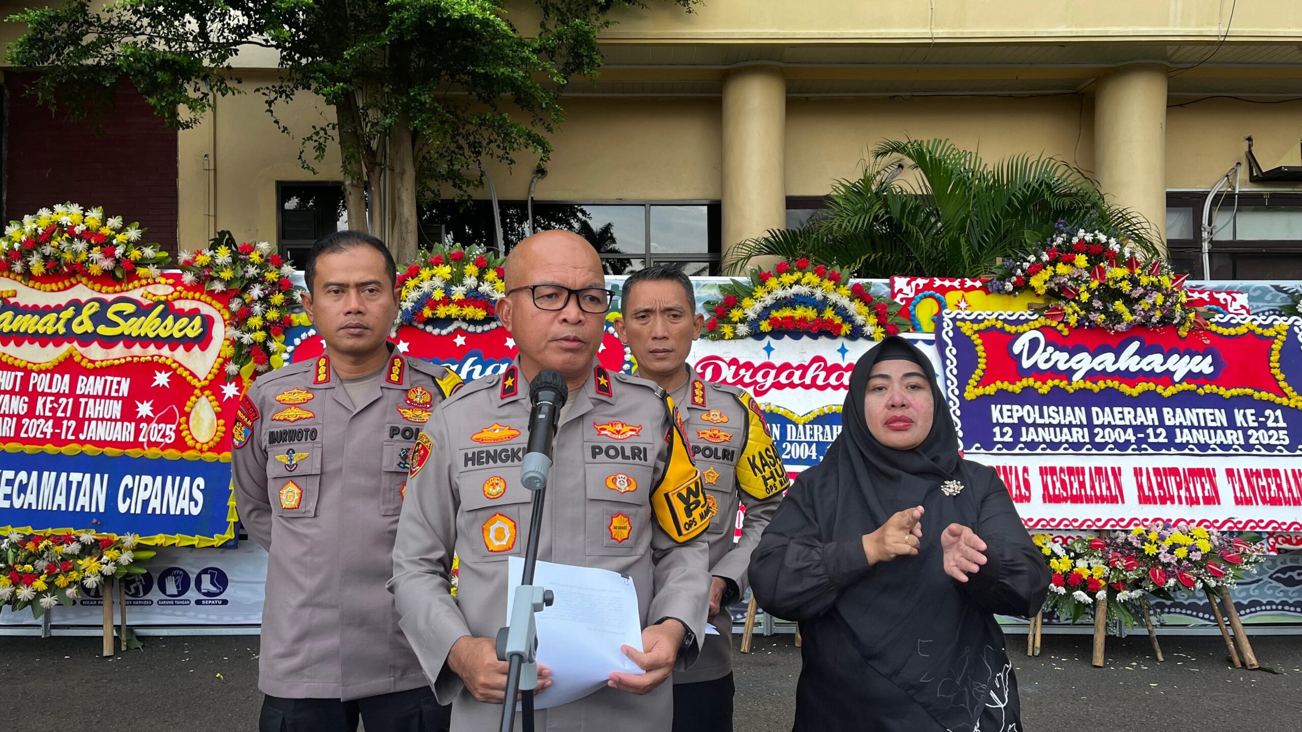 Wakapolda Banten mengatakan hari Ulang Tahun ke-21 Polda Banten jatuh pada Minggu, 12 Januari 2025. “Hari ini merupakan hari Ulang Tahun ke-21 Polda Banten yang jatuh pada 12 Januari 2025, disela upacara peringatan hari Ulang Tahun ke-21 Polda Banten tentu sebagaimana program unggulan Kapolda Banten dalam commander wish terdapat program Dimtaq, Jumling dan Sumling, Polisi peduli pengangguran, warung Bhabinkamtibmas termasuk adanya pergelaran cepat anggota kepolisian,” katanya.