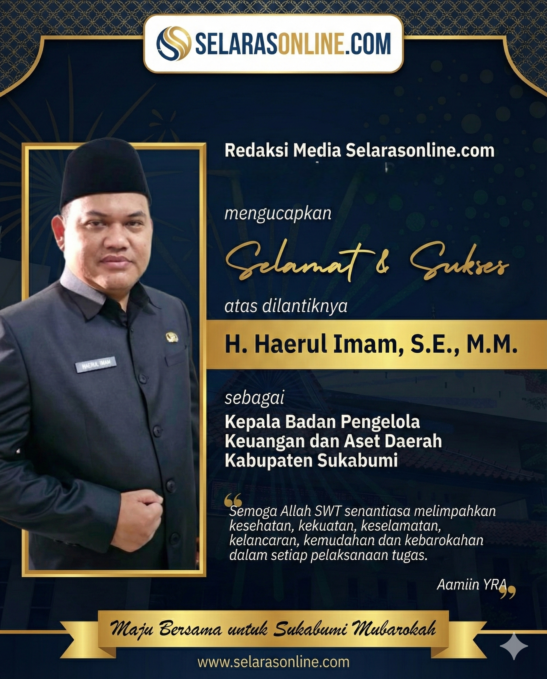 SUKABUMI – Jajaran redaksi media SelarasOnline.com menyampaikan ucapan selamat dan sukses atas terpilih dan dilantiknya H. Haerul Imam, S.E., M.M. sebagai Kepala Badan Pengelola Keuangan dan Aset Daerah (BPKAD) Kabupaten Sukabumi.