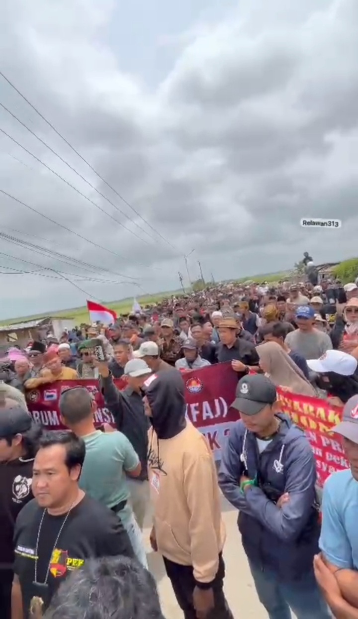 Ribuan warga berkumpul di Desa Muncung Kecamatan Kronjo Kabupaten Tangerang Provinsi Banten, 01/02/2025 untuk Menolak PSN PIK 2, Diharapkan Pak Prabowo Subianto Presiden Republik Indonesia Tegas untuk Segera Mencabut Status PSN PIK 2 dan segera Memulihkan kondisi yang Terdampak oleh Kekejaman dan Perampasan Hak Rakyat akibat Operasi yang berkedok mengatasnamakan PSN PIK 2, sehingga terjadi Pemagaran Laut, Pengkavlingan Laut, Pengurugan Laut, Pengurugan Pantai, Pengurugan Sempadan Pantai, Merusak Mangrove, Sertifikat Laut, Hilangnya tanah Bengkok, Hilangnya rawa-rawa tandon air dan Lain sebagainya.