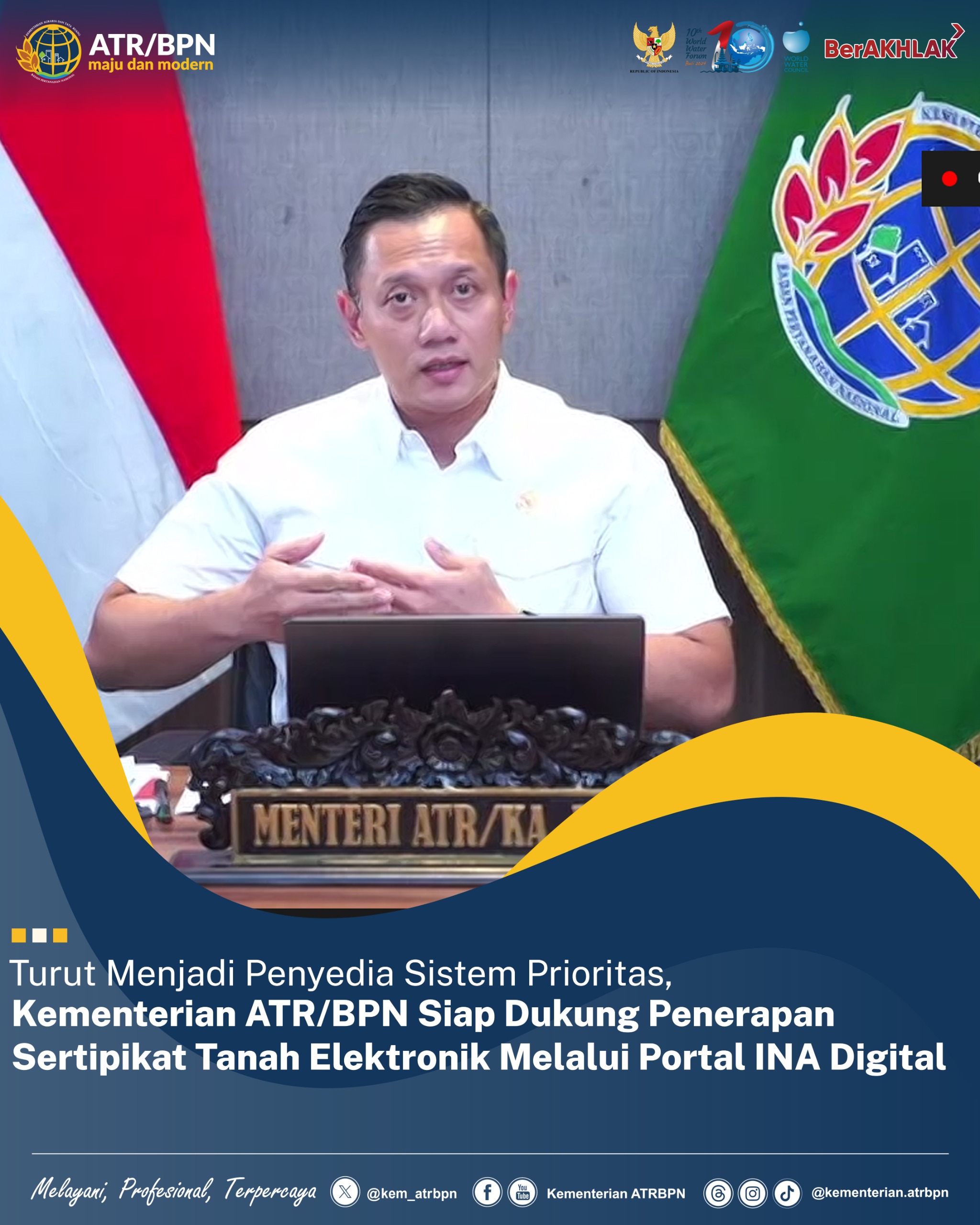 “Kami akan lakukan percepatan, sehingga bisa _catch up_ dengan kementerian lainnya dan mudah-mudahan bisa segera menghadirkan layanan elektronik yang dibutuhkan melalui portal INA Digital ini,” tambah Menteri ATR/Kepala BPN.