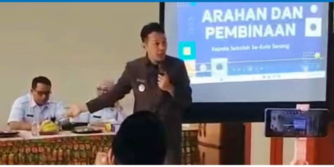 Dalam sebuah acara resmi kegiatan pembinaan bagi 221 Kepala Sekolah Dasar seKota Serang yang digelar di salah satu ruangan Sekolah di kota Serang. Rabu, 4 Juni 2025.